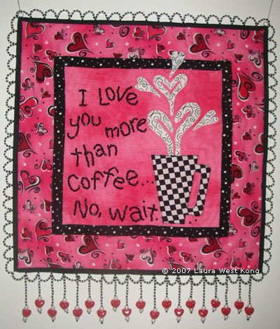 divaofquilts I love you more ... - Continuing to explore beaded embellishments in a coffee-themed series.