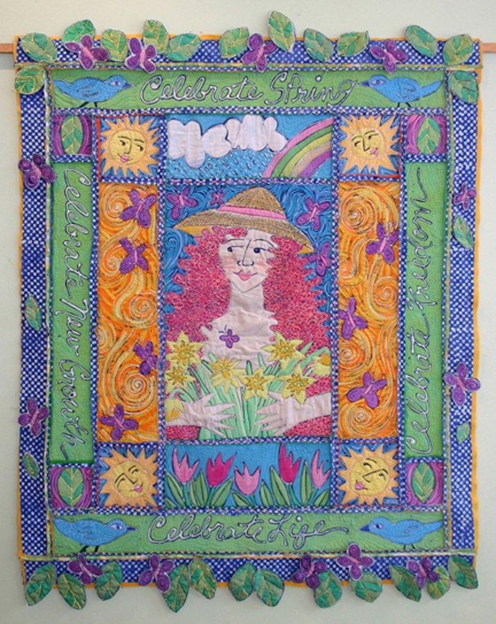 terridee Celebrate Spring - Orignal batiks pieced together in a naive manner to represent youth and beginnings.