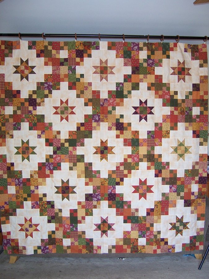 quilter2964 It's That Darn Butternut Squash - This quilt got it's name because I could NOT for the life of me remember the name of the inspiration fabric UNTIL the quilt top was done--it was like a curse or something!! (Now I can easily recall that my inspiration fabric was Sweet Potato Pie--but all I could ever get to come into my head while I was making this top was "butternut squash"--weird!!)