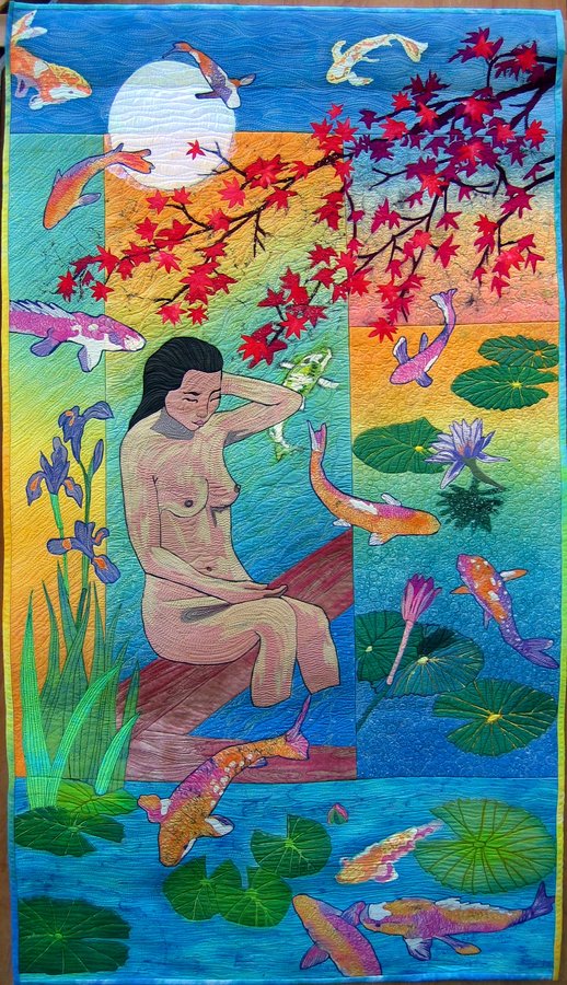 terridee Koi Dreams - Several different kinds of silks dyed and batiked. This quilt was pieced together like a Japanese scroll.