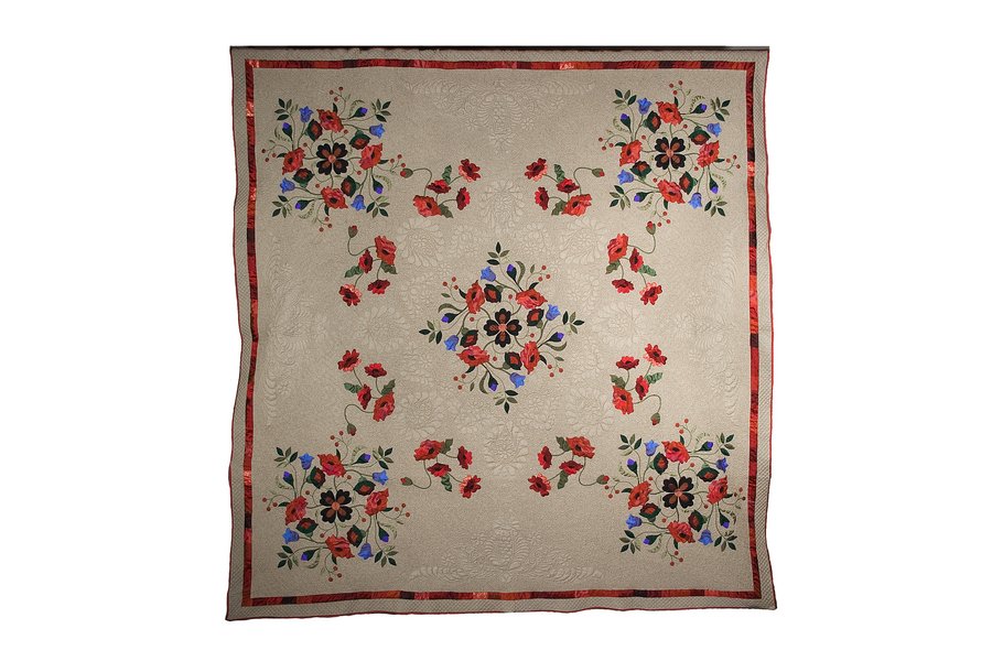 sewingbyjanet Poppies of England - I used the pattern for the center & corners and designed the middle circle of poppies. The poppies and batting are silk which gives it a different look from cotton batting. I quilted it with silk thread on my bernina using the BSR.
