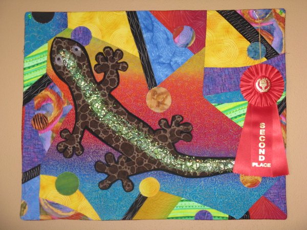 barngirl Drazil (lizard spelled backwards) - This quilt was made for a grab bag swap that Tomme Fent organized on the Quiltart list. I had fabrics and trims from Jan Patterson and I made the quilt from what I had received from Tomme.. After making the quilt I found that it was Jan Patterson's fabric bag. It was so much fun..