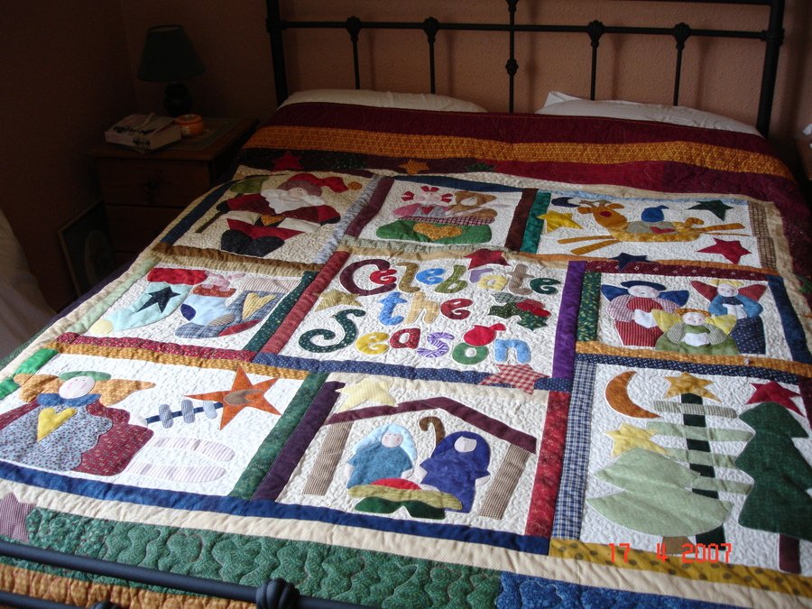 lmcfood Christmas Fun - Applique Quilt with nine blocks and pieced borders.