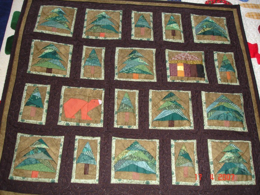 lmcfood Bear in the Woods - Wallhanging that was foundation peiced and quilted.