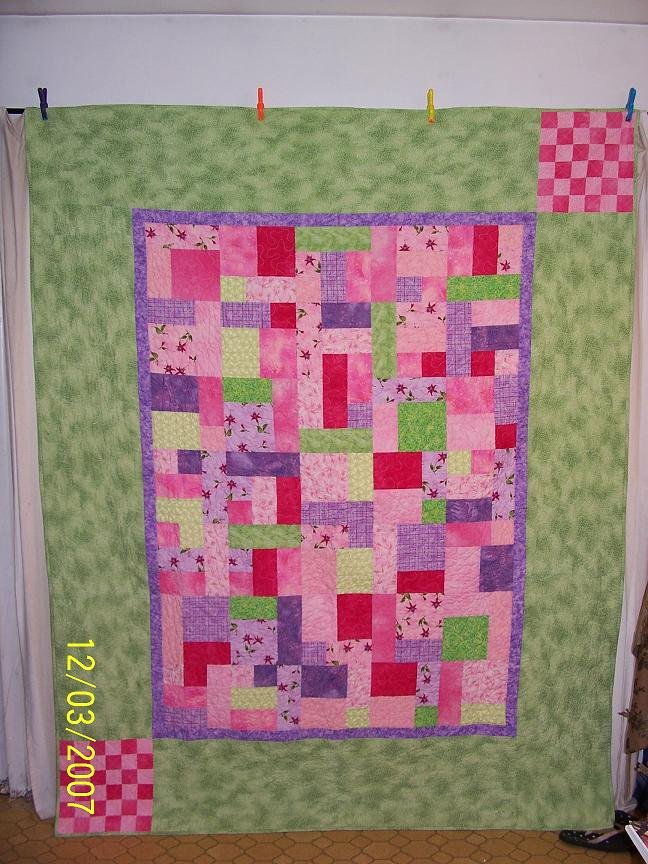 Bonnie Pink and Green - I made this gift for Robin Roberts of "Good Morning America"...when she announced that she had breast cancer I felt I needed to show my support by making her a place to snuggle under and get better.