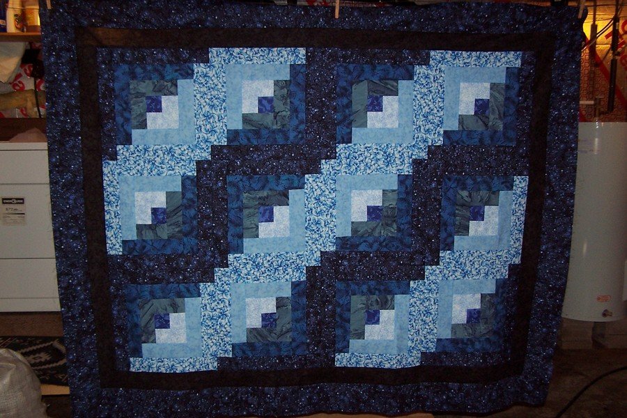denbigh49 Log Cabin in Blues - another quilt I did for my sister while she and her family travel in the car