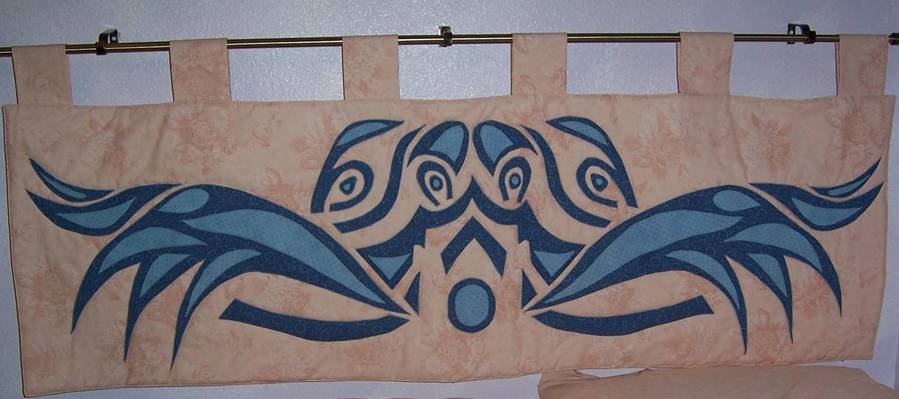 | Design Source - Description | I made this quilt to use as a headboard. I doodled the design and Ricky Tims cleaned it up and helped me at the 2005 RMQR.The design reminded me of a design made by pacific north west first nation's people. |