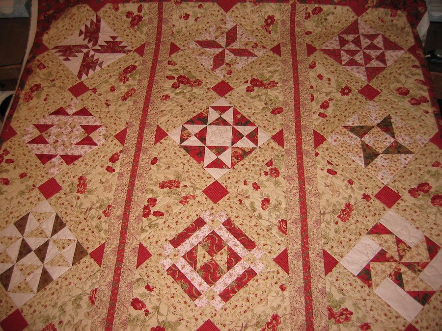 | Design Source - Description | Sampler quilt fom LQS. First real quilt quilted on my Longarm. I experimented with different techniques hence the name of the quilt. |