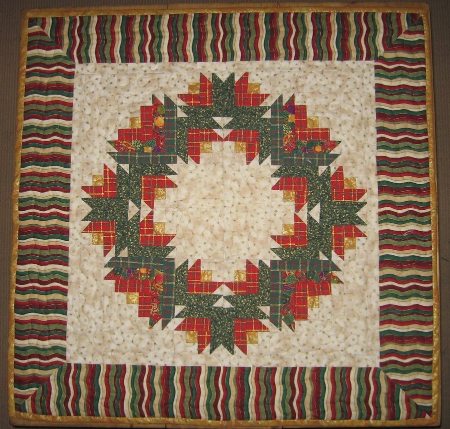 hrts2quilt Christmas Wreath - I wanted a Christmas wreath pattern to use at the holiday and fell in love with this pattern. I have learned the importance of remembering all information on the patterns and quilts I make. Thanks Alex and Ricky! From here on out I document everything!