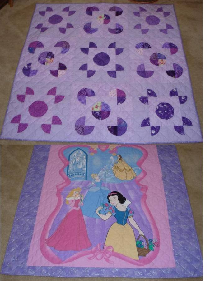 sandytn Purple Learning Curve - Purple “Learning Curve” – Pattern from August 2006 issue of American Patchwork & Quilting. I made two quilts using this pattern for my son-in-law’s nieces, one pink and one purple. I combined two pictures to show the panel of Disney Princess fabric I used for the back of the quilts.