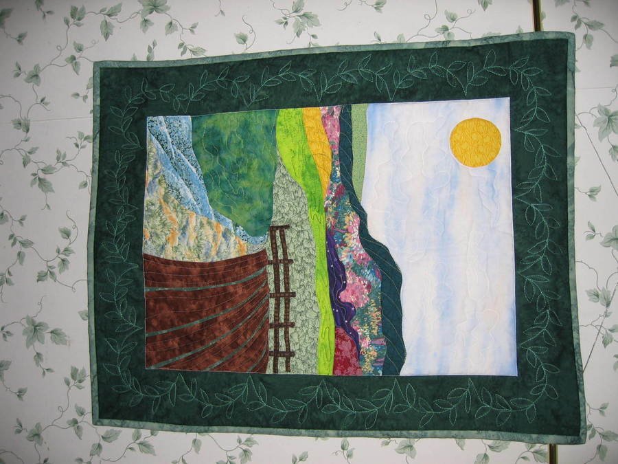 | Design Source - Description | Took a class with Nancy and we all did the Summer Landscape. Everyone's was different because of choice of fabric and placement of fields. I finally finished the quilting this year. |