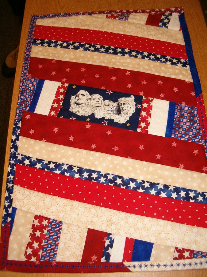 sewharty Mount Rushmore Quilt As You Go - I used the Mount Rushmore fabric as the center and did a quilt as you go wall hanging for my dorm mom Jan when I worked at Mt. Rushmore. I don't know where she is now, but she was so awesome I wanted to make her something special. I made this in under 3 hours! She absolutely loved it!