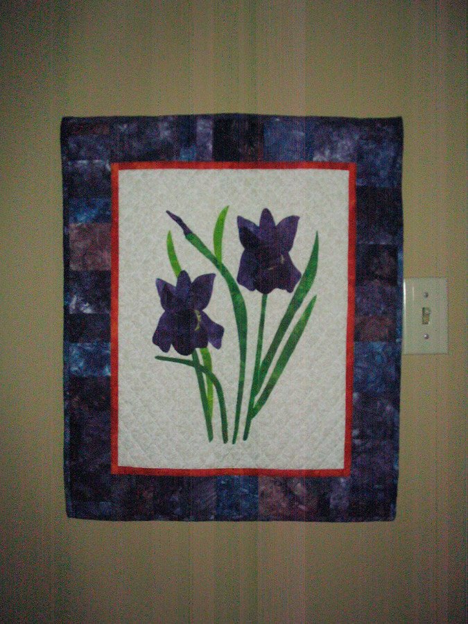 olgaeliz 3 d Iris - this is a sample of a pattern from FunDay quilting patterns by Juliet Nowlan. I used my hand dyed fabrics. Juliet wanted me to do the pattern so she could edit the instructions if needed.