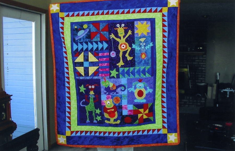 mdraymo SPACE DUDES - I made this for my grandson Eli as his baby guilt. Even though he has outgrown the baby bed he now has it hanging in his room as part of his "space theme" room.