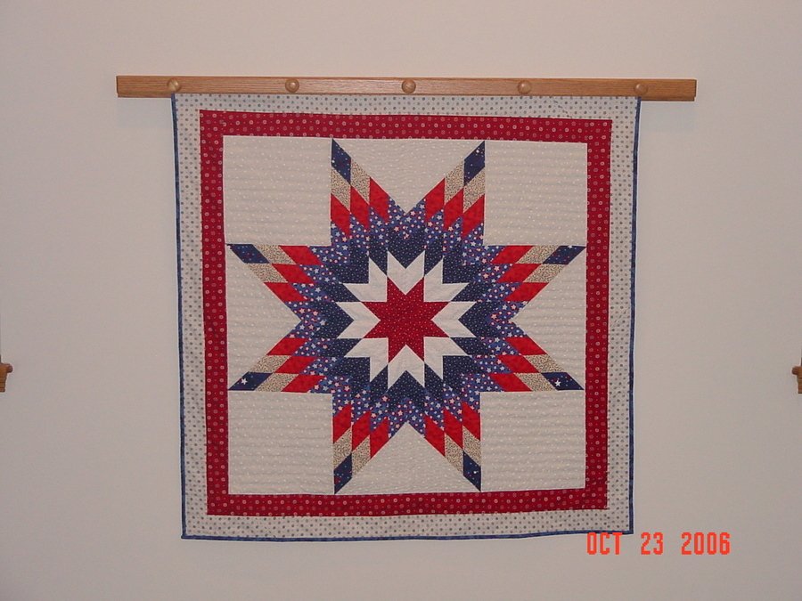 Caeli Patriotic Lone Star - My mother helped me to make this quilt using QuiltSmart interfacing. It hangs above the fireplace in my 2 story family room.