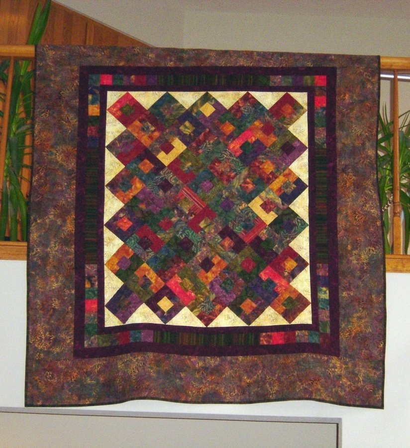 sharonquilts October Wedding - I made this quilt as a wedding gift for close friends. It is pieced from batiks in Autumn colors. I quilted from the back using the leaf motifs on the backing as a pattern.