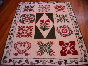 ljkn52 "NOT" so Traditional - Most of these blocks are traditonal Baltimore Album blocks but I have no idea where the patterns came from. I took a class while living in Saudi Arabia and was provided with the block patterns. I think I started in 1993 and finally finished in 2006!