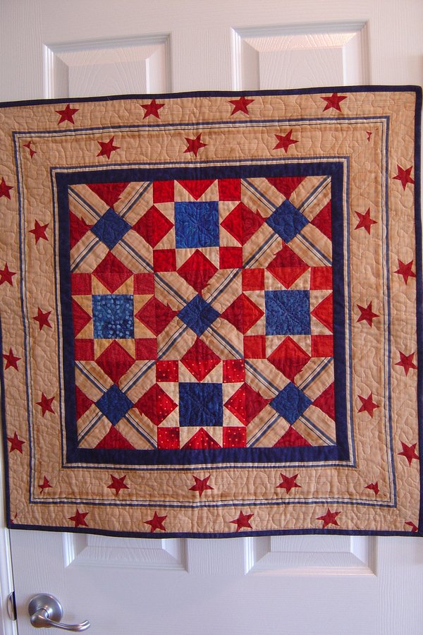 sharonquilts Red and Blue Stars - I made this quilt from a workshop with Sally Saulmon. The stripes used in the cross block create a secondary pattern.