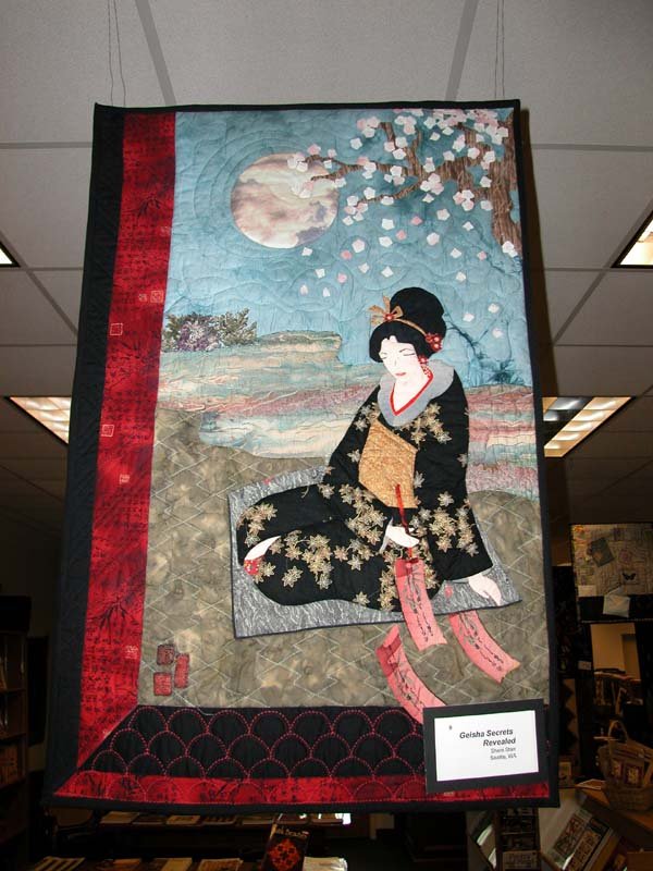 Starquilter Geisha Secrets Revealed - This quilt was made as part of the APNQ Traveling Exhibit titled Telling Secrets....I based my design on one of my favorite books, "Memoirs of a Geisha"...I handquilted her with silk threads...Sold at APNQ Auction 2004