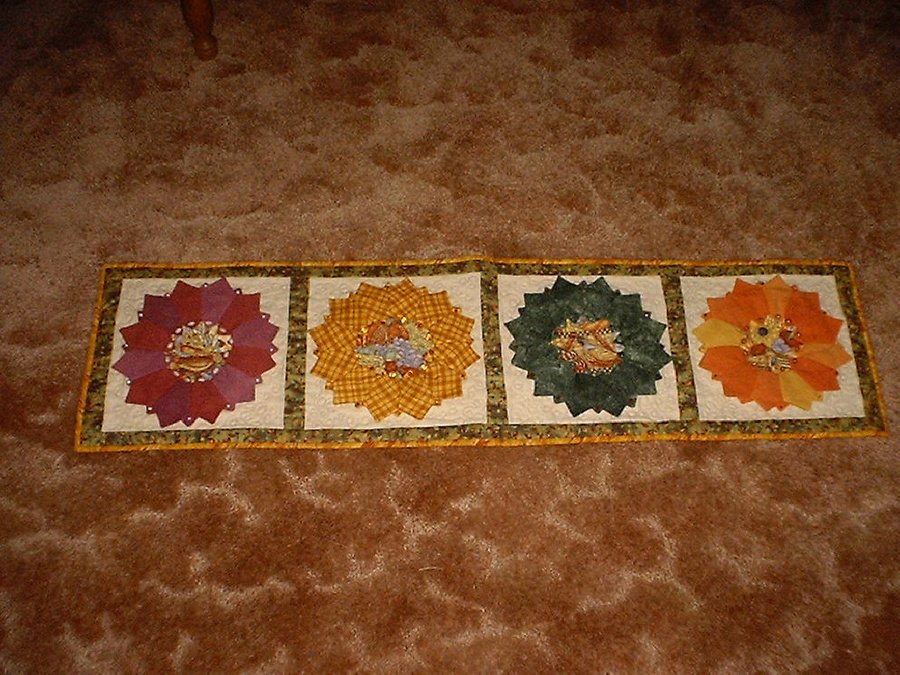 quilter64 Beautiful Bounty - I saw this project on Simply Quilts, Nov. of 2004. I thought it would be fun to do and it was. It was demonstrated by Rami Kim. It is called the Chop Key Flower Technique.