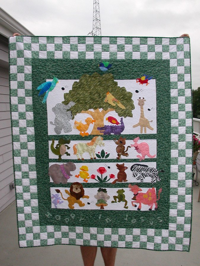 | Design Source - Description | Adapted design from a Brandywine Designs pattern and book. Really fun to make and fun to find the fabric!! Made the quilt for my nephew's new baby. My nephew's wife is from Australia so I had to add a kangaroo! |