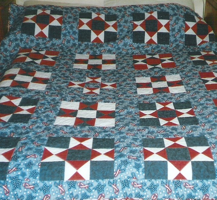 quilting101 Red, White and Blue - My brother has visited the states a few times and loves it. So i made this quilt for him. i was very pleased to get the flag fabric in Australia