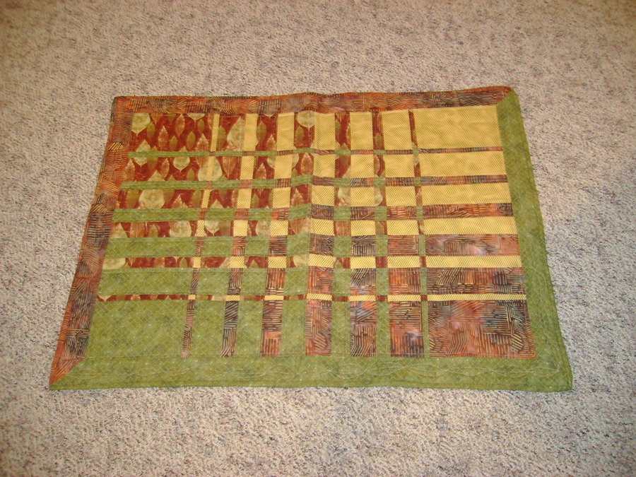 | Design Source - Description | This was a class that I had taken when I was brand new to quilting. Little did I know what it would lead to (stash, stash, stash) I quilted this using gold metallic thread and copied the leaf motif in the quilt. |