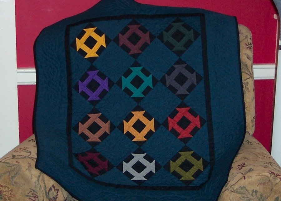 | Design Source - Description | I love Amish quilts and the monkey wrench pattern, this wallhanging hangs in my sewing room. |