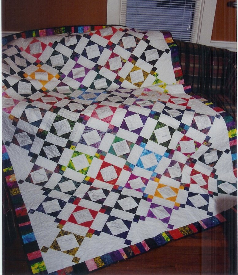 | Design Source - Description | I made this for my daughter Jaime when she graduated high school. All of her classmates signed a block. This is my first (and only to date) full sized quilt. Jaime told me it was her most prized possesion. |