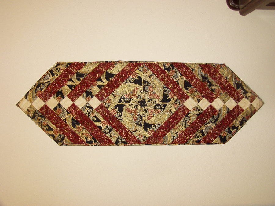 jpadden53 Mom's Table Runner - Black, red, and cream with metallic gold "oriental feel" prints to coordinate with formal dining room decor. Made for my mother-in-law's 88th birthday. When she passed away in 2011, the family returned the table runner to me.