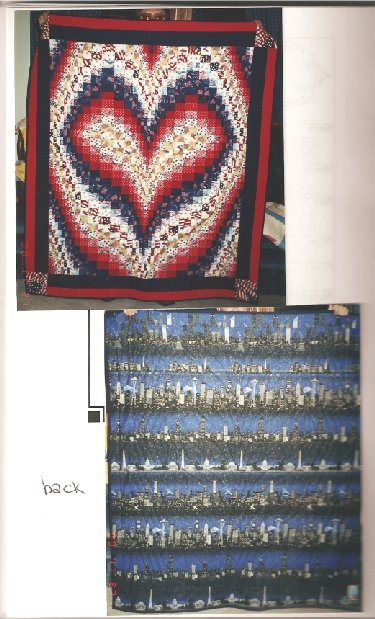 Idahoqltr Bargello Heart - I used Americana prints to create this quilt for my husband's birthday in 11/2000. The back has a fabric with D.C., Hollywood, N.Y., etc. on it. It won viewer's choice at a small local quilt show in 8/2002.