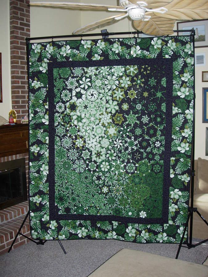 | Design Source - Description | Made from one piece of fabric, cut into 6 identical repeats, aligned, cut into strips, then cut into equilateral triangles, sorted by predominate colors and arranged on a design wall. |