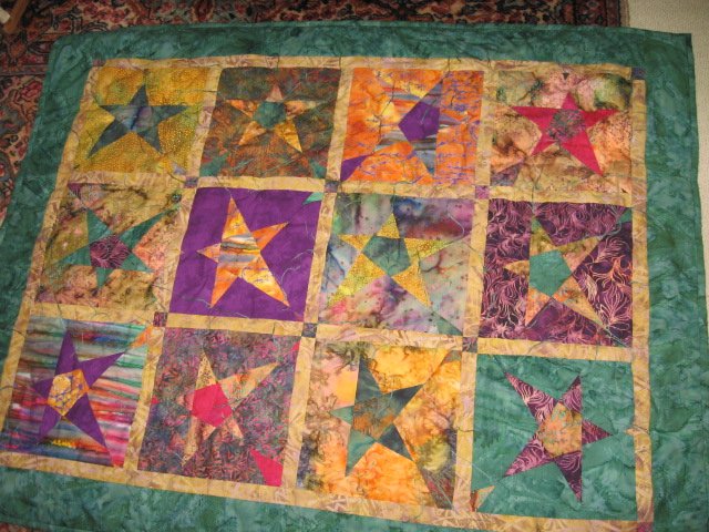 sandramfindling Hope for Margie - Made as a prayer quilt for my neice as she went through Chemotherapy last year. Batik fabrics used and tied. Each tie was knotted by friends and family with a prayer. She is doing super now. All her treatment is finished.