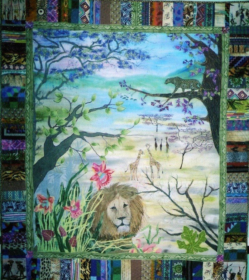 | Design Source - Description | Hand painted, machine raw-edge collage applique and embroidered. Used some vintage African fabrics given to me by a missionary to Africa. |