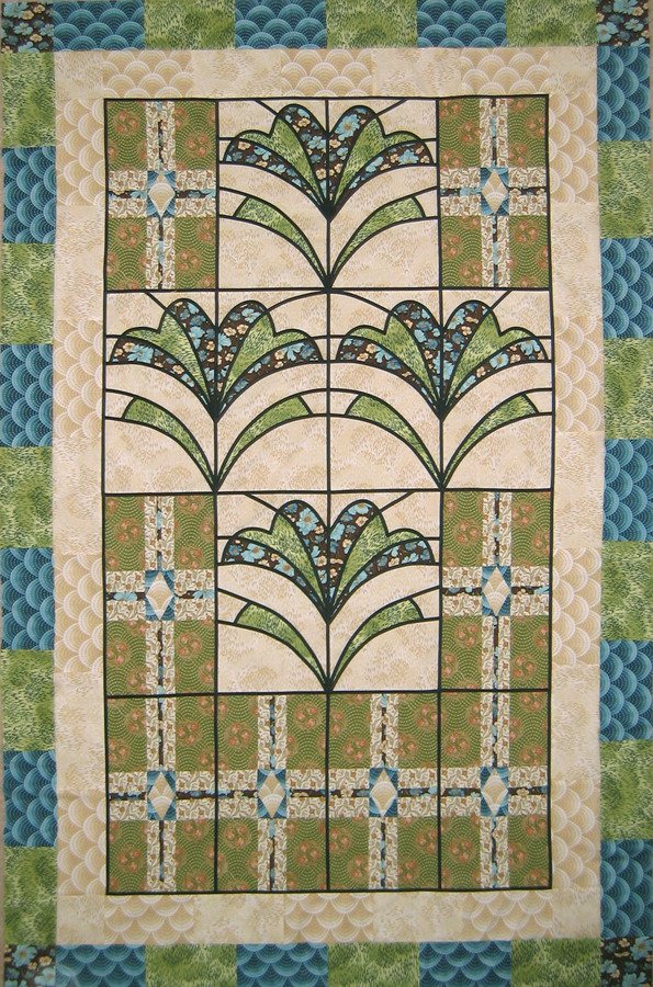| Design Source - Description | Using art deco style fabric from Robert Kaufman, I created this "mission" look in stained glass. |