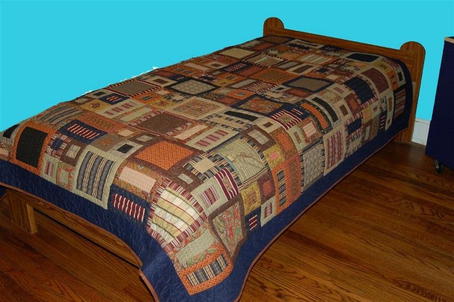Roberta Matt's 18th Birthday Quilt - This quilt was made for my son Matt on the occasion of his 18th birthday. It is a combination of some new Moda fabrics and a lot of scraps too. It's the first time I've made a quilt using traditional colors, and after doing it, I think I've grown up a bit. I no longer feel that everything has to have purple in it, or is bright, although I do still love purple, and I do still love bright.