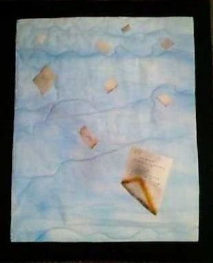 Caityquilter Out of a Clear Blue Sky - This small quilt was made in response to 9/11. It depicts the burning documents that were the first one New Jersey woman knew of the destruction of the world trade centre.