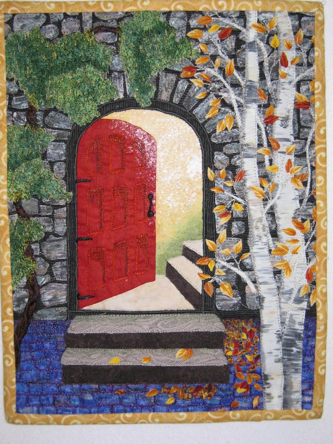 highplainsquilter Challenge quilt- Unlimited Possibilities - This is my entry for a Quilting Arts Magazine challenge. The quilt is 8 1/2 x 11". I knew this was a challenge (my first) I "needed" to enter...because my last name is Door! Although small this was a challenge for me but it was good to finally dive into something and get it done.