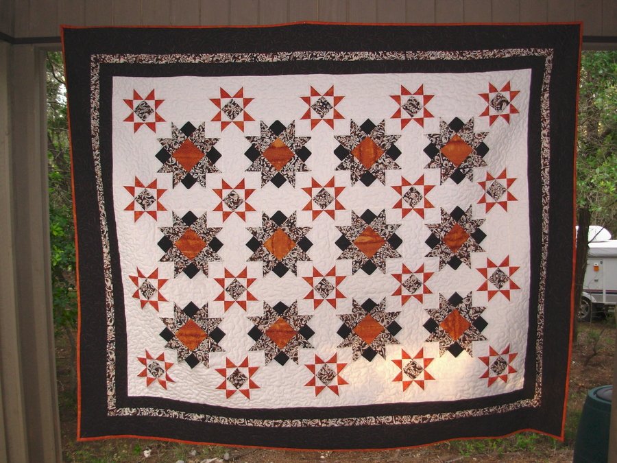mlorenz Raised Star - My mother purcahsed the batik fabric in Mexico City in 1970 for $10 a yard. IT took me years to talk her into letting me have the yardage. It then took me three years to find complimentary fabrics and another two years to decide on a block that would work.