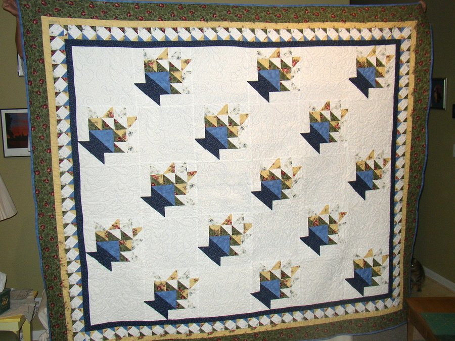 mlorenz Alicia's Flower Basket - In 2002, I took a europeon trip with my OPldest sister, her two duaghters and my mom. I purachse the majority of the fabric in Niem, France and filled in with fabrics from home. I made the quilt for my niece Alicia as a high school graduation present.