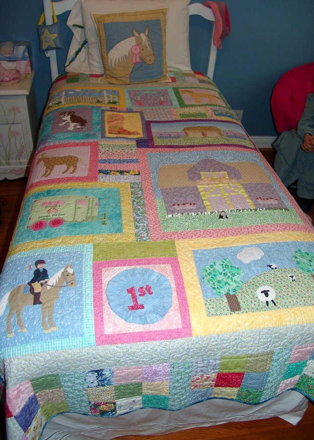 | Design Source - Description | This quilt was made for my neice Lindsay on her 5th birthday. She loves horses and her new puppy. Both horses and the puppy were incorporated into the quilt. |
