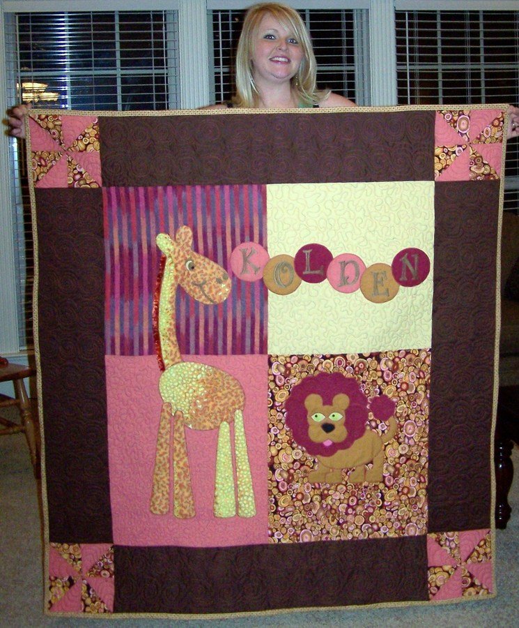 lwilson Kolden's quilt - Just completed this quilt for a baby gift for a friend of my youngest daughter. I sold my MegaQuilter before it was finished, so it is the last quilt done on that machine. Will get my long arm soon. Had to finish the binding after she opened the quilt at the shower! Isn't that like a quilter?