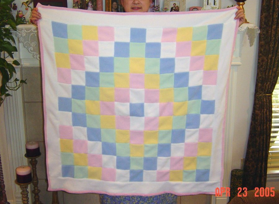 | Design Source - Description | Pastel Colored Trip Around the World pattern made in fleece with flannel backing. |