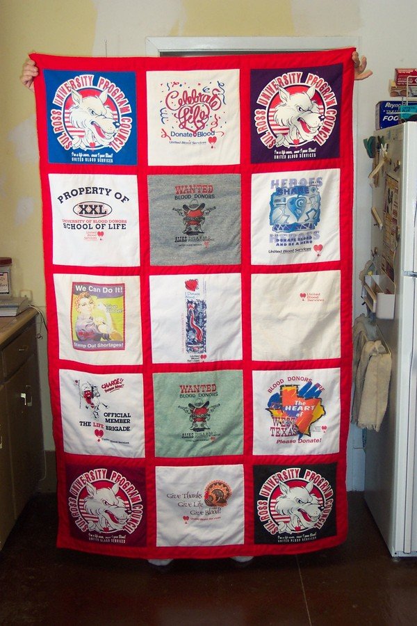 kwiltinmama Blood Drives at Sul Ross - These are some of the T-shirts I received for donating blood while serving as a blood drive coordinator for 20 years at the university where I work.