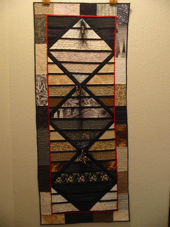 | Design Source - Description | On our way to Italy, we had a layover in the Philadelphia airport. The floor provided inspiration for this quilt. I had planned to make it with 9 blocks, but only had 10 days to complete it for a color class. |