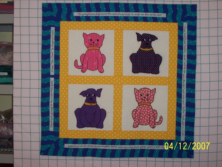 DMENG What would Freddy do? - The parents of my baby neice wanted a quilt based on the poem by Eugene Field. I found the pattern, but could not bring myself to make it in calico or gingham. I thought - What would Freddy Moran do? And here it is. The words to the poem are printed and fused to the border.