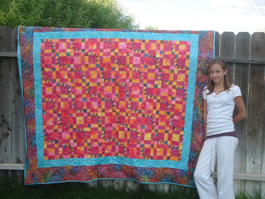 Jillmc Desert Sunset - My daughter made this quilt when she was 13 just last year. It is her 2nd quilt. It has approximately 990 pieces. The block was from the Quilter's Cahce website. Stephanie just set her blocks in a different pattern than suggested. Itsn't it Gorgeous?!