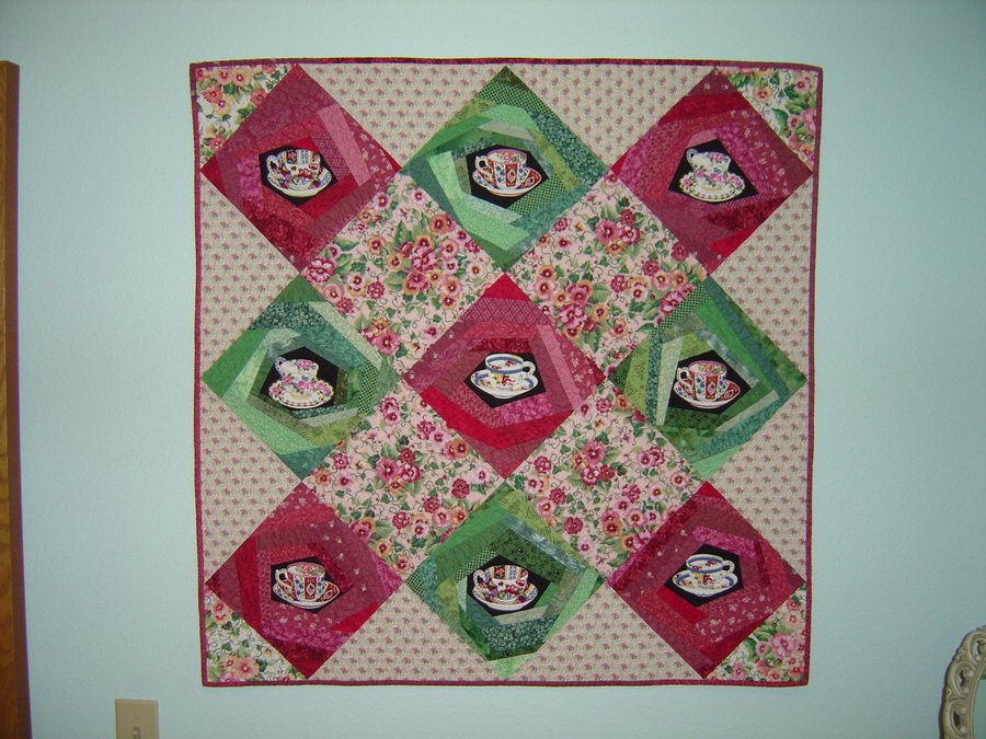 RoseH Teacup Crazy - I made this wall hanging completely out of my stash (something I rarely do) from ideas in the book Crazy With Cotton by Diana Leone.