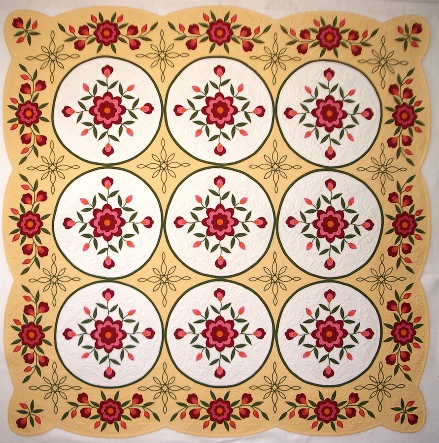 | Design Source - Description | I love flowers and gardening almost as much as I love making quilts. This quilt is entirely machine made: applique, quilting, and piped binding ala Ricky's Grand Finale video. |