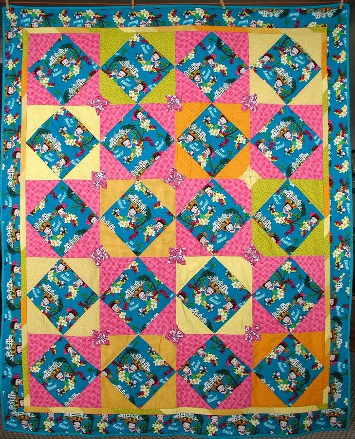 | Design Source - Description | My Mom loves Betty Boop and she also loves Hawaii, so, lo and behold, Betty Boop in Hawaii fabric was perfect. I embellished a bit with origami flowers and beads. |
